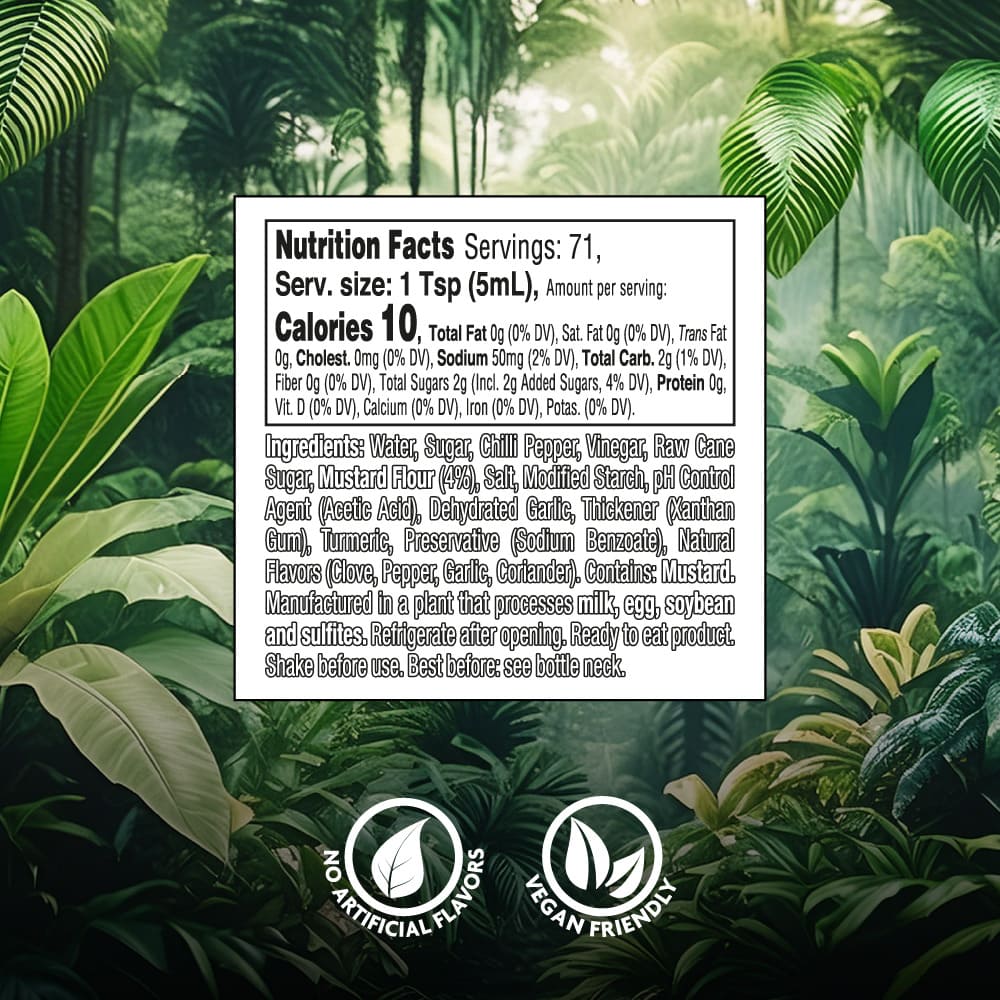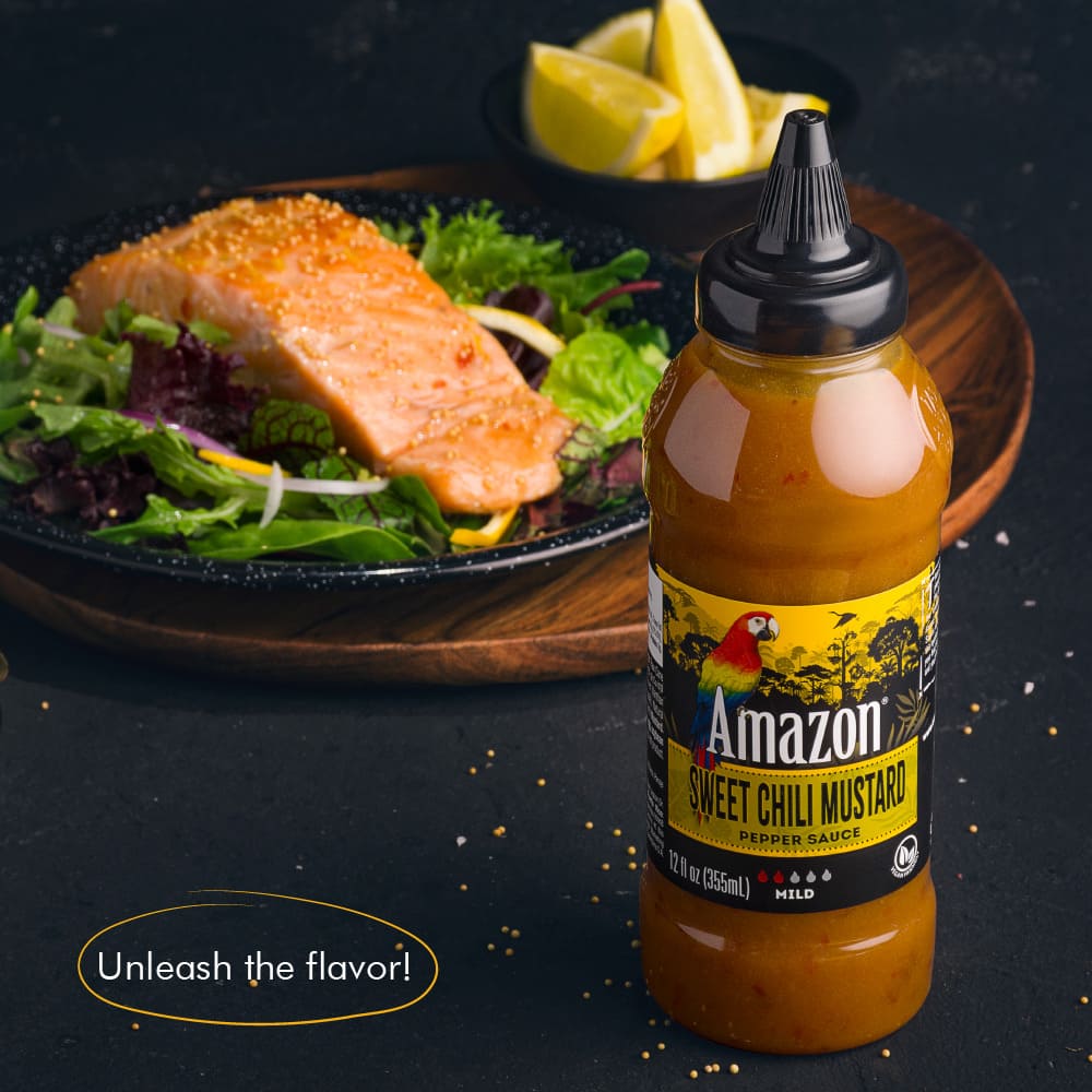 Made with a perfect blend of sweet chili and tangy mustard, this sauce delivers a unique flavor experience that balances sweetness and spice. Its vibrant, exotic taste captures the essence of the Amazon, making every bite a delightful journey of flavor.