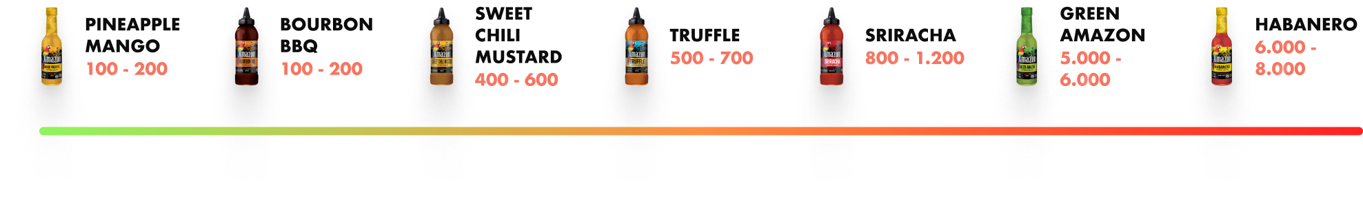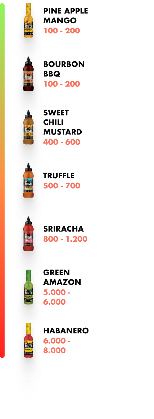 Looking for something spicier or milder? Browse our collection to find your perfect match. Whether you prefer a subtle kick or a fiery heat, we have a range of options to suit your taste. Discover sauces with varying Scoville Heat Units, a measure of capsaicin that determines their heat level. Find your ideal balance and heat level with our diverse selection.